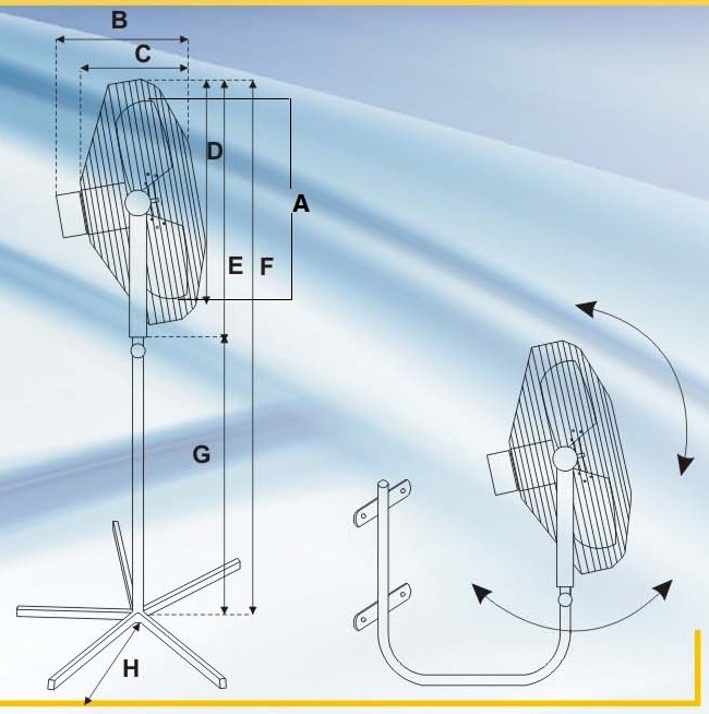 מאוורר תעשייתי מדגם R כוללים כנף בת 4 להבים רחבים מאלומיניום בקוטר 630מ"מ. גוף כל מאוורר עשוי מתכת בציפוי אפוקסי, והמאווררים עצמם הינם חד-פאזיים, בעלי 2 מהירויות הפעלה, קופסת חשמל אטומה, ושתי רשתות הגנה.